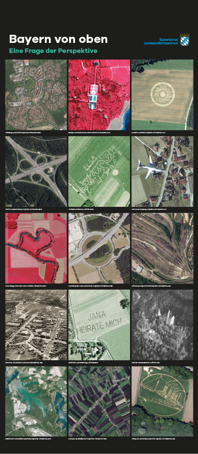 Anlässlich des fünfjährigen Bestehens des Bayerischen Landesluftbildzentrums stellte die Wanderausstellung dessen Angebote einem breiten Publikum vor. Die multimedial gestaltete und leicht verständlich aufbereitete Ausstellung vermittelt einen spannenden Einblick in die Geschichte und Technik der Luftbildfotografie. Auf 14 Ausstellungstafeln wurde den Besucherinnen und Besuchern gezeigt, wie Luftbilder gemacht werden, wie sie aufbereitet werden und wo sie eingesetzt werden.